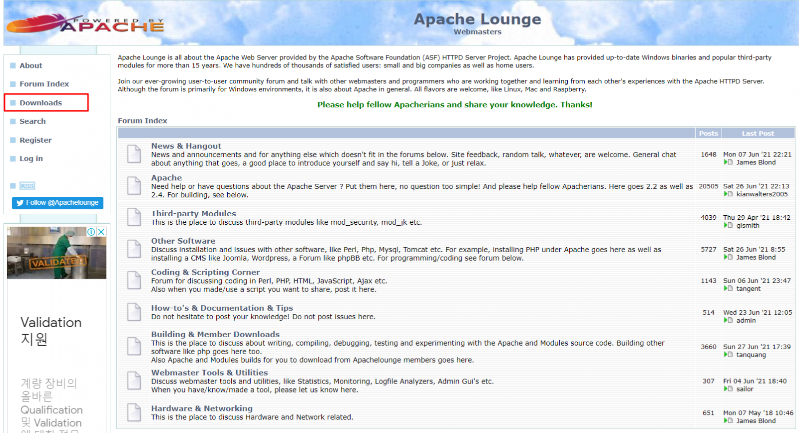STEP 1) 윈도우 os 버전의 apache 서버 다운로드 페이지로 이동합니다.