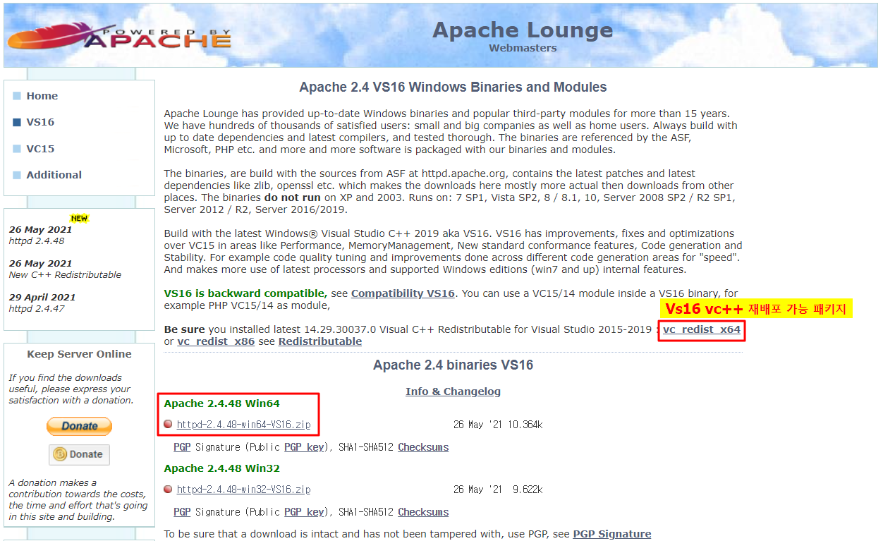 STEP 2)  os 버전에 맞는 파일 (httpd-2.4.48-win64-VS16.zip)을 다운로드 합니다.