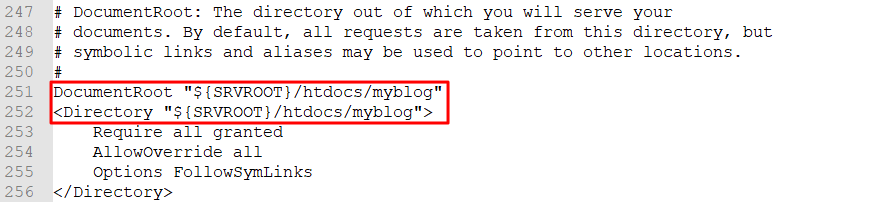 STEP 4) 압축해제한 폴더 위치에 맞게 apache 설정 파일 내용을 변경합니다.