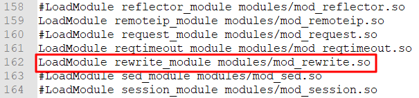 rewrite 모듈을 사용할 수 있도록 해당행 주석 해제