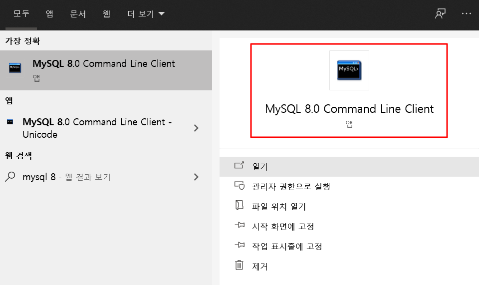 STEP 1) MySQL 8.0 Command Line Client(CLC)를 실행합니다.