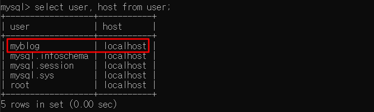 본 블로그에서 사용할 DB 관리를 위한 계정 추가 생성